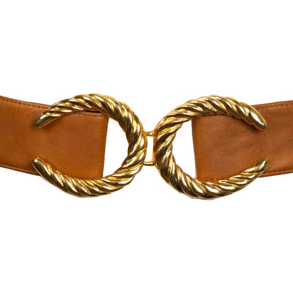 The RB take on the western trend. This belt has two horseshoe shaped clasps serving as the buckle to this one of a kind beauty.